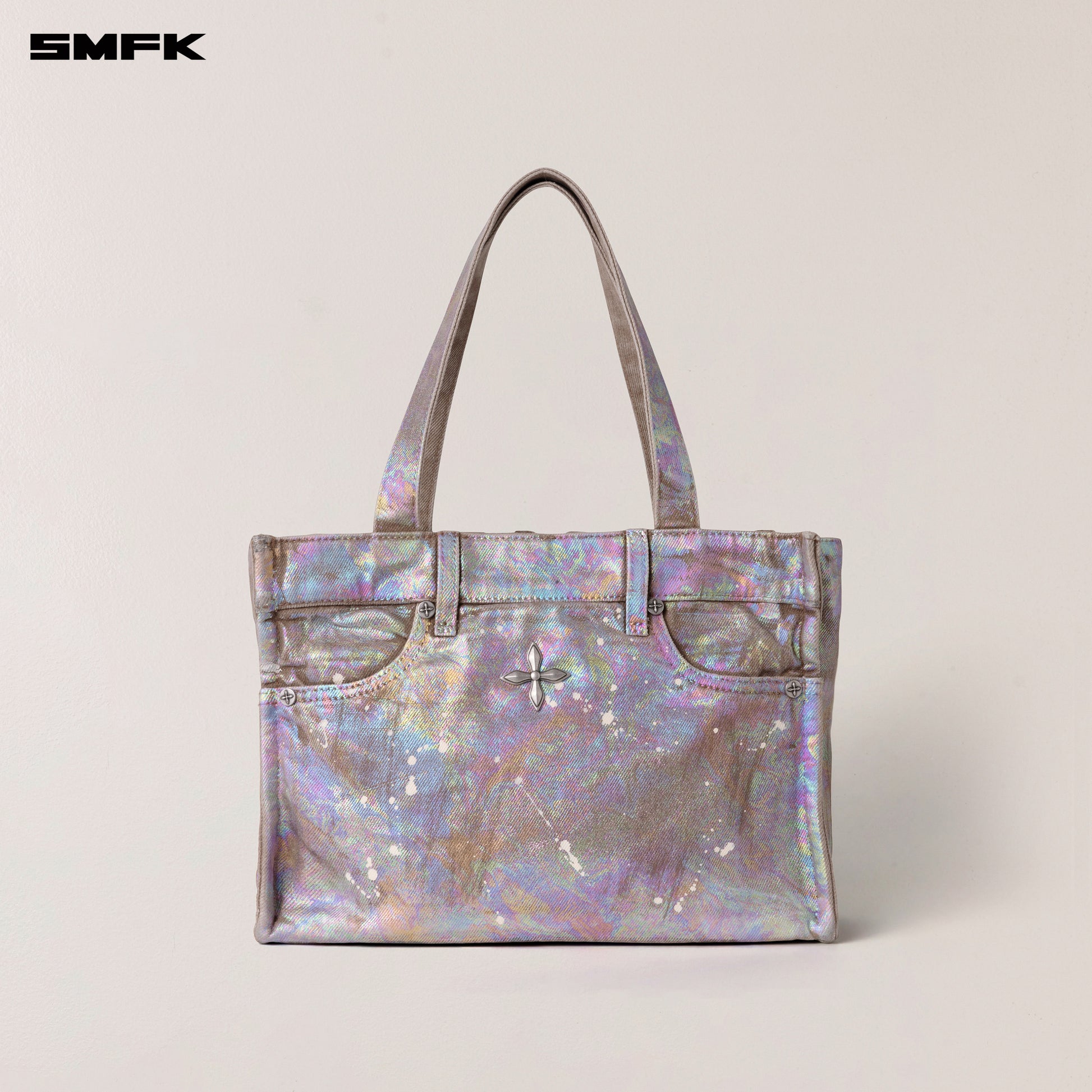 SMFK's newly designed denim tote bag in 2025 is collected from the iconic structure and sewing and rivet techniques of jeans, and the denim bag production process created by combining bag production. With a variety of classic metal trouser chains, it can be used in combination with other accessories.