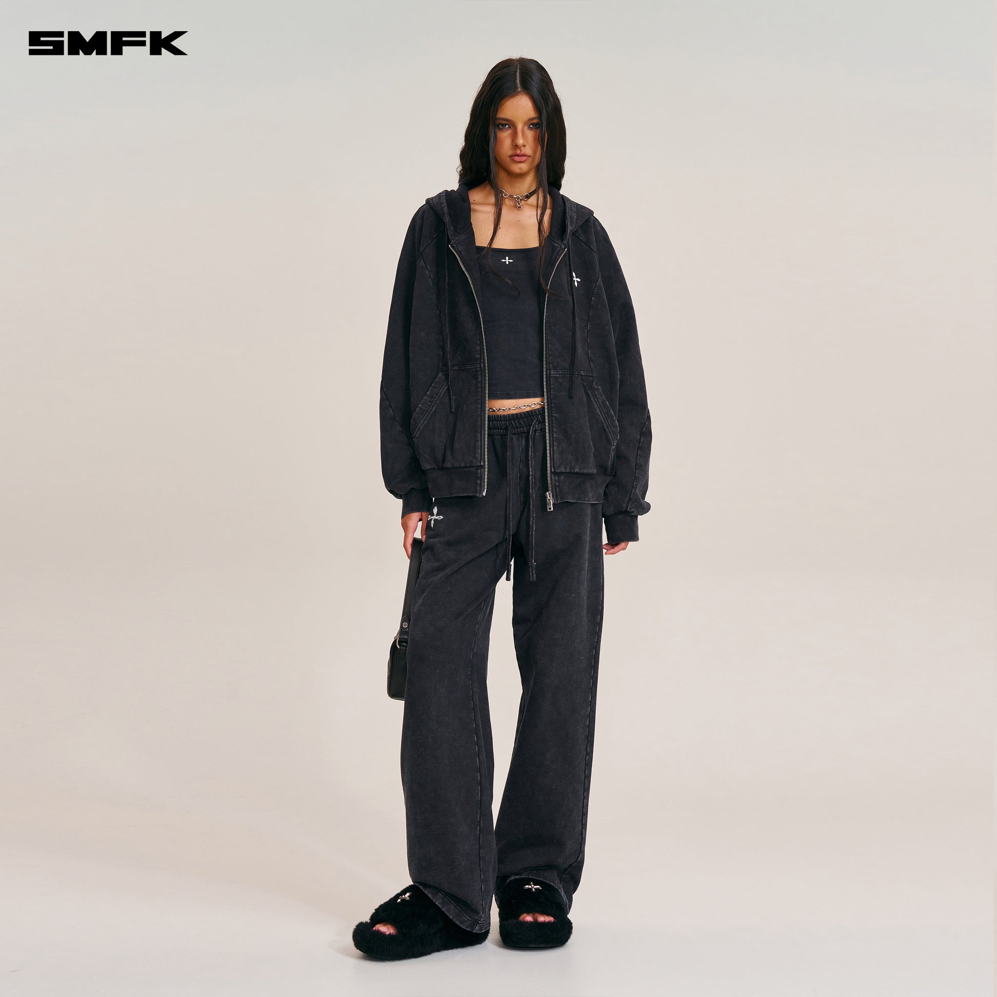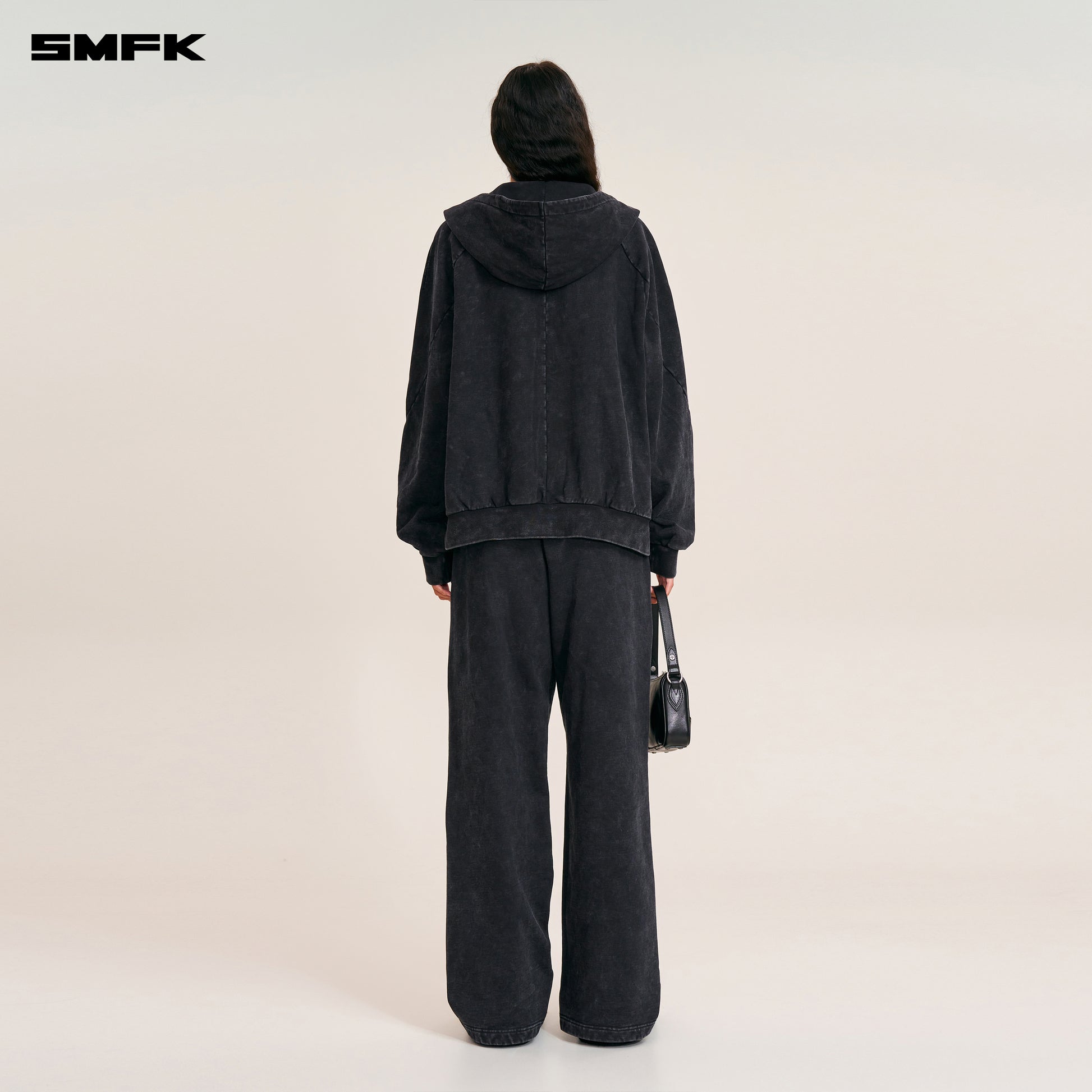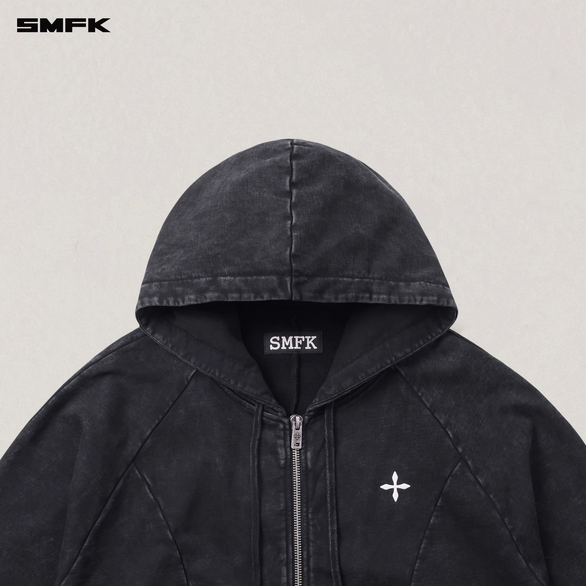 VINTAGE-SAVAGE LOOSE SPORTS ZIP HOODIE/FADE DYE/ WILD BLACK